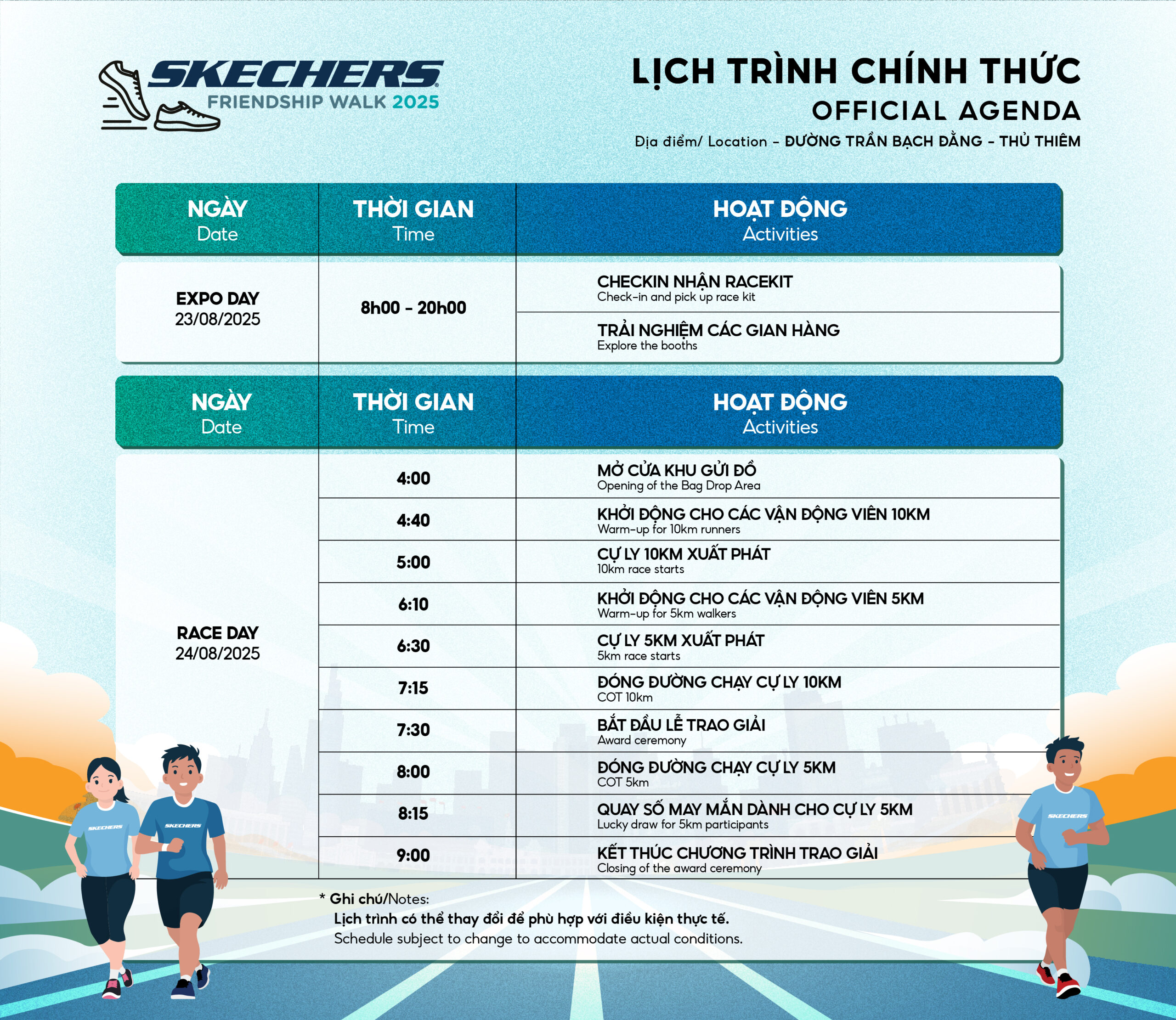 Sau thành công vang dội của mùa giải 2024, Skechers Friendship Walk 2025 trở lại với quy mô lớn hơn, khí thế sôi động hơn, tiếp tục trở thành điểm hẹn không thể bỏ lỡ của những người yêu thể thao – từ vận động viên chuyên nghiệp đến những ai đam mê chạy bộ và đi bộ thư giãn mỗi ngày.