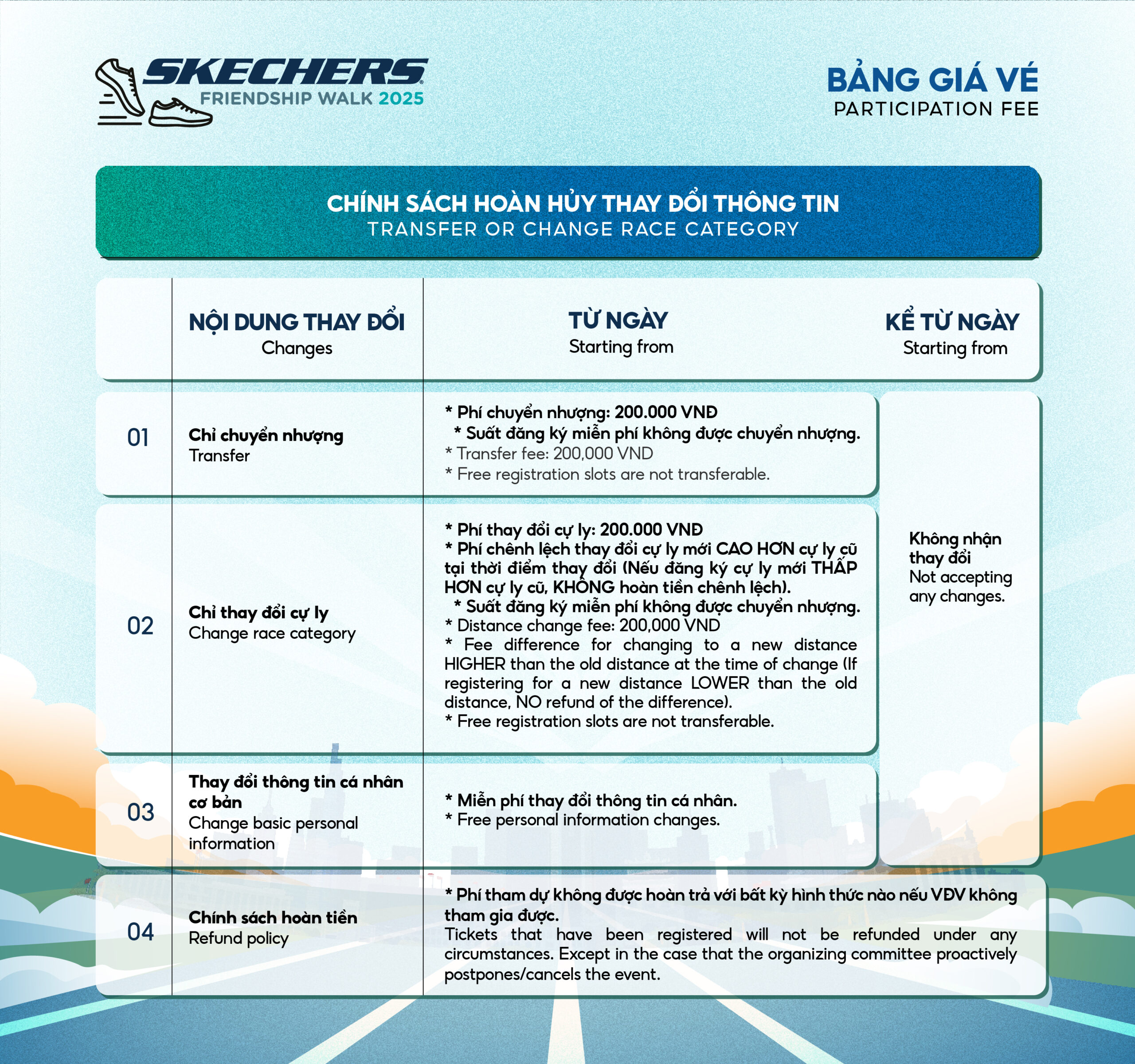 BẢNG GIÁ VÉ